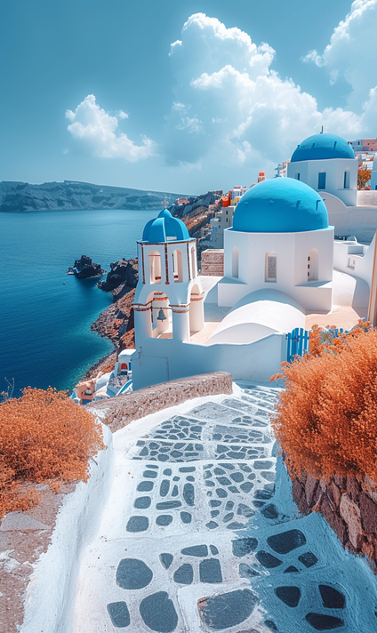 Famous for its iconic white-washed buildings with blue-domed roofs perched on the cliffs, this Greek island is a haven of serenity and beauty.